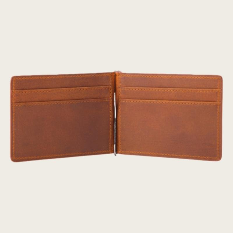 تجمع محفظة مشبك النقود بين مشبك النقود المعدني التقليدي ووظائف المحفظة الحديثة. وهي مزودة بمشبك نقود مصمم أساسًا لتأمين النقود.