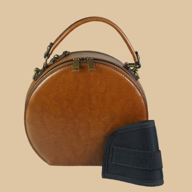 Looks like a regular fashion bag (Western, urban, minimalist, etc.) so users don’t feel “tactical” or exposed.