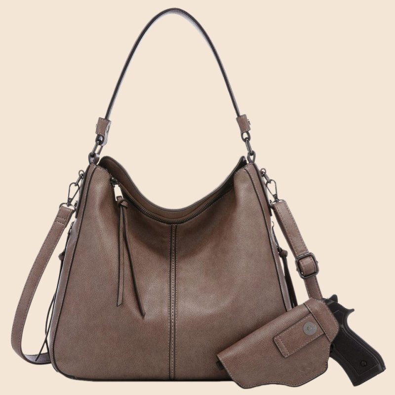 A purse is considered a concealed carry purse when it is purposely engineered to safely and discreetly hold a handgun. This usually means a dedicated, separate gun compartment with hook-and-loop or holster system that fully covers the trigger, quick-access openings (often left/right zip entries), and lockable zippers for added security. The bag structure, straps, and reinforcements are designed to support the extra weight of a firearm without deforming, while the exterior still looks like a regular fashion handbag. For brands and retailers, these safety and access features—combined with compliant, discreet design—are what differentiate a true concealed carry purse from a normal purse.