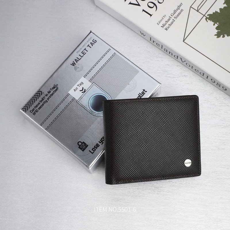 Our range covers classic bifold and slim/card-holder styles with AirTag-ready options, available in genuine leather (cowhide) and PU/faux leather alternatives. Standard colors include black and brown, with custom tones supported. Optional features for OEM programs include RFID-blocking layers, logo branding (deboss/emboss, foil, metal logo plate), and retail-ready packaging configurations.