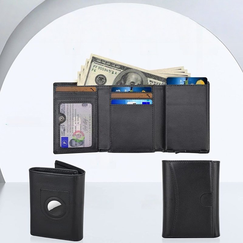 Bifold styles are available, along with other AirTag-ready structures. Bifold remains a core format for retail display and daily use in many wholesale wallet programs.