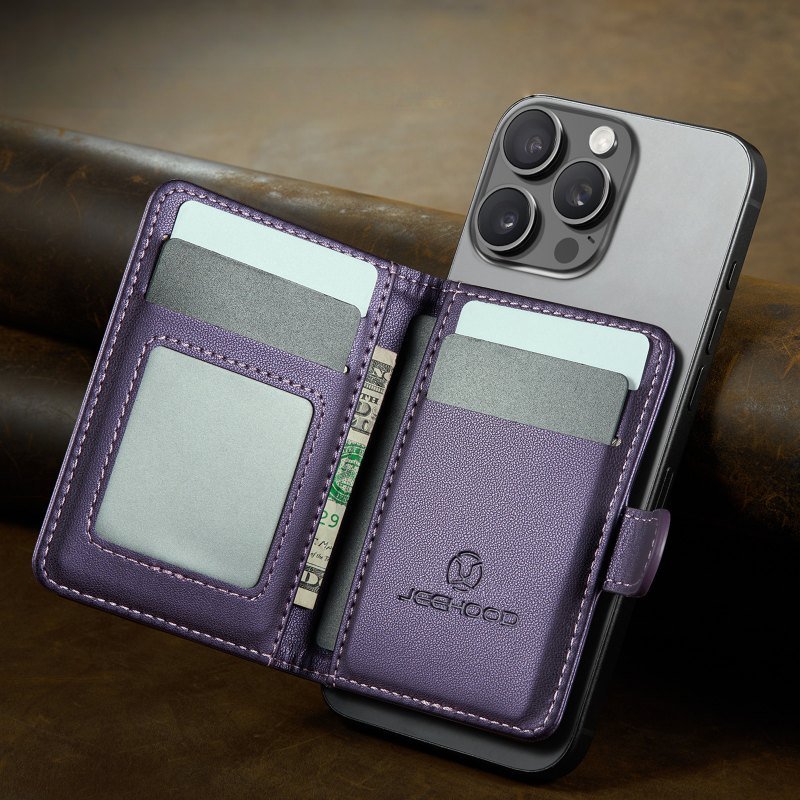 The wallet structure integrates a fixed magnetic module to support consistent attachment strength across production runs. Interior storage is optimized for everyday carry, typically holding essential cards in a compact layout. Materials are offered in genuine leather and selected PU/microfiber alternatives, with controlled grain and surface finishing to keep color tone and handfeel consistent across batches.