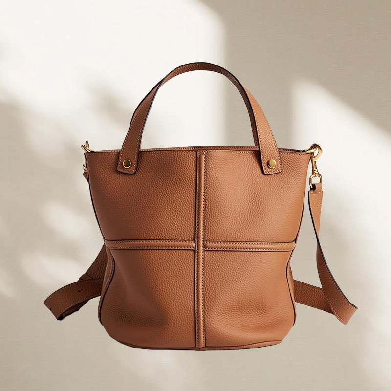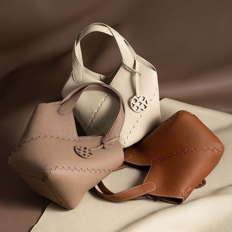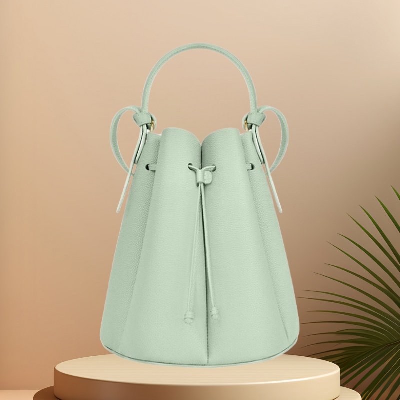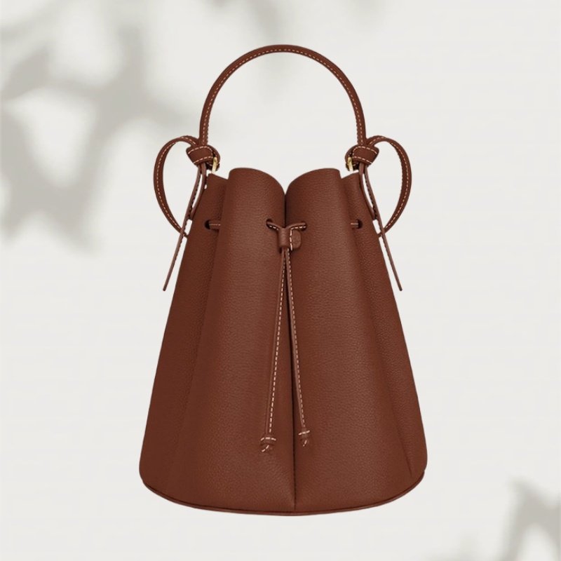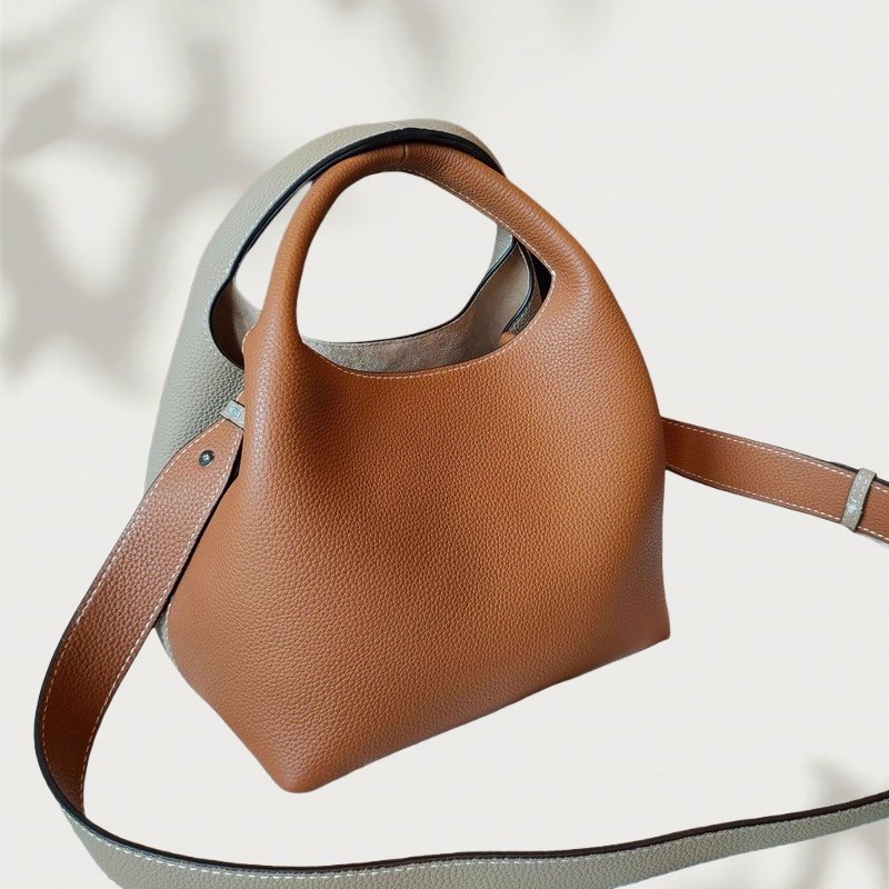 - El acabado basado en Pantone se puede realizar en bolsos tipo cubo de cuero marrón, bolsos tipo cubo de cuero suave o bolsos tipo cubo de cuero para mujer, según las paletas de la marca.