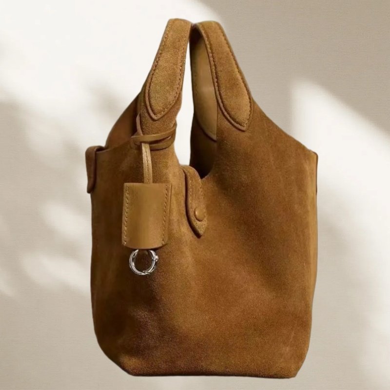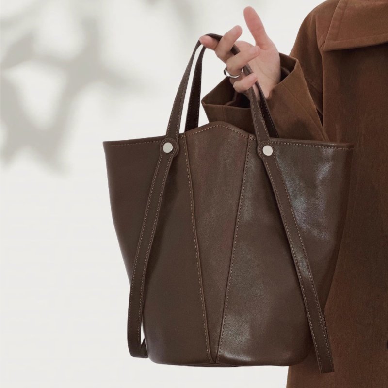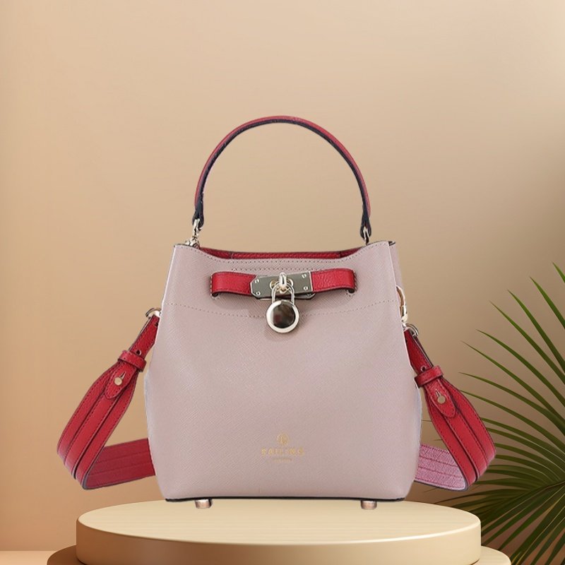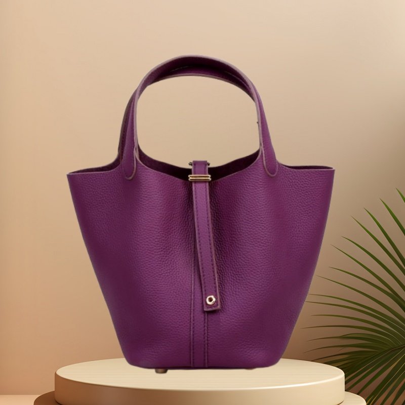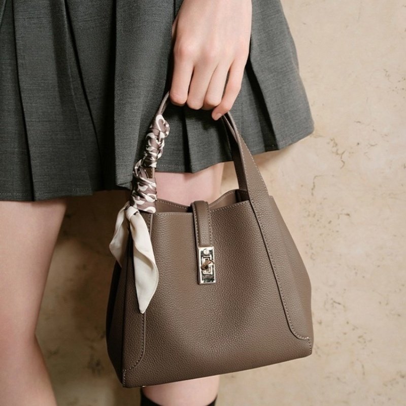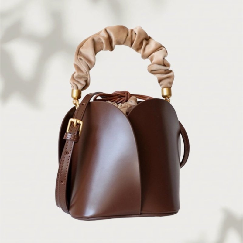 - El acabado basado en Pantone se puede realizar en bolsos tipo cubo de cuero marrón, bolsos tipo cubo de cuero suave o bolsos tipo cubo de cuero para mujer, según las paletas de la marca.