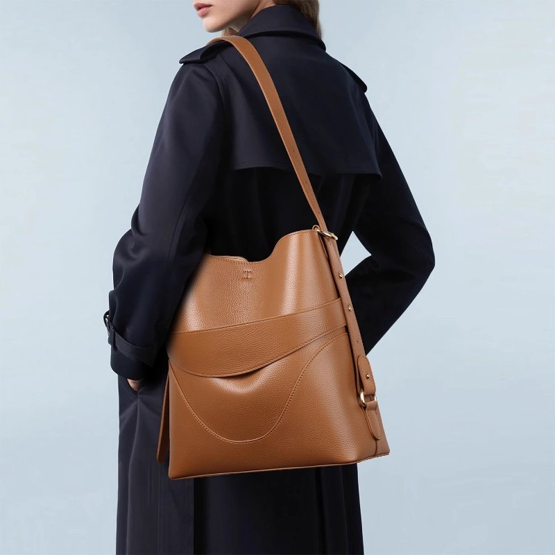 ¿Buscas un bolso cubo de cuero con cinturón, un bolso cubo de cuero marrón, un bolso cubo de cuero marrón o un bolso cubo de cuero de diseñador? Nuestra asistencia OEM/ODM garantiza que tu estilo, color, correa y diseño sean exactamente los de la marca.