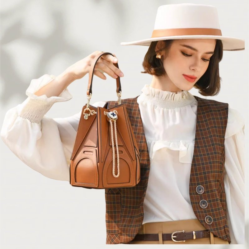 Bolso de piel auténtica tipo cubo: materiales y fabricación