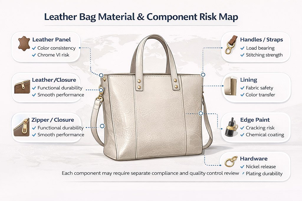 As a practical rule, buyers should not rely on one general report for an entire bag program. Leather, hardware, lining, coatings, and packaging may come from different sources, and each component may need separate review depending on the market and customer requirements.