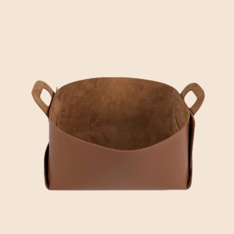 Cleaning a leather basket is easy. You need a soft, damp cloth only. If there’s a spill, add a little mild soap, gently clean the area, then dry immediately.