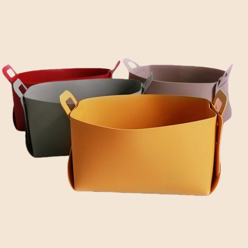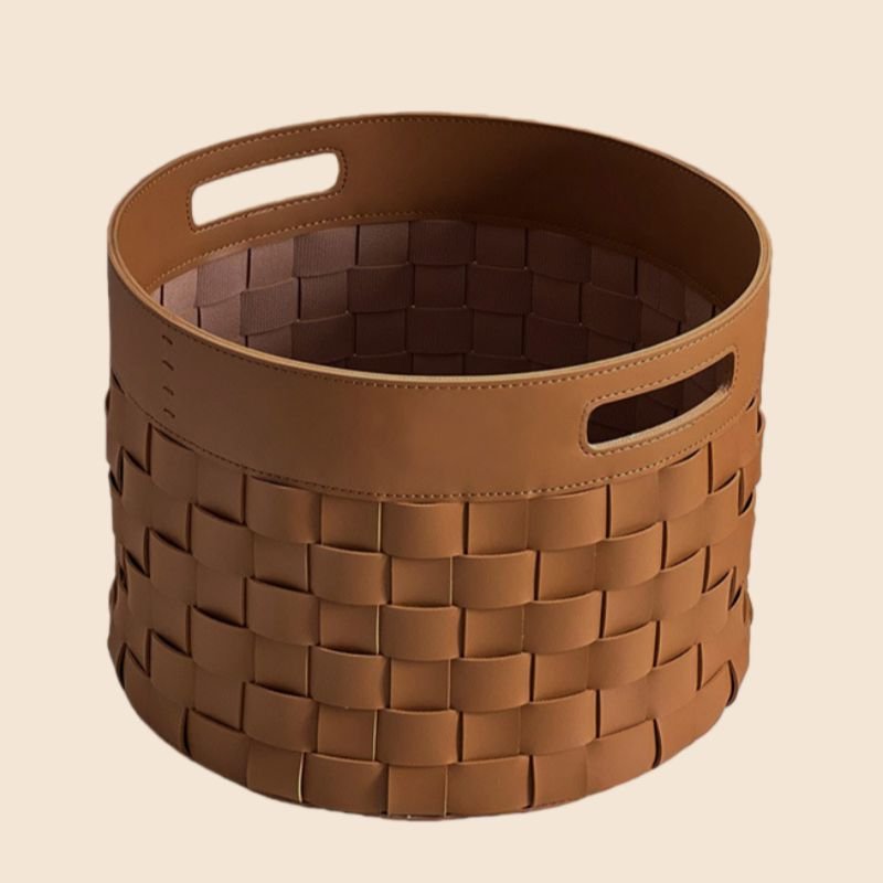 First of all, leather baskets last long. They’re not like plastics or fabrics that wear out. They get more stylish the more you use them. They also hold shape and are easy to wipe clean because they don’t trap dust.