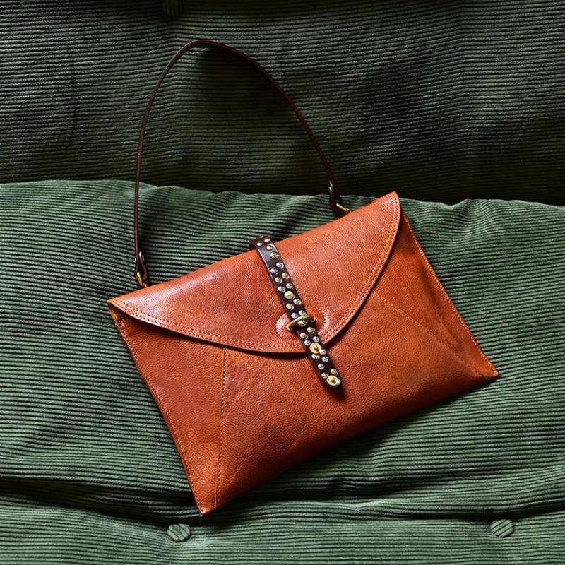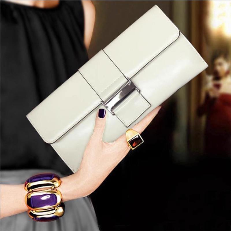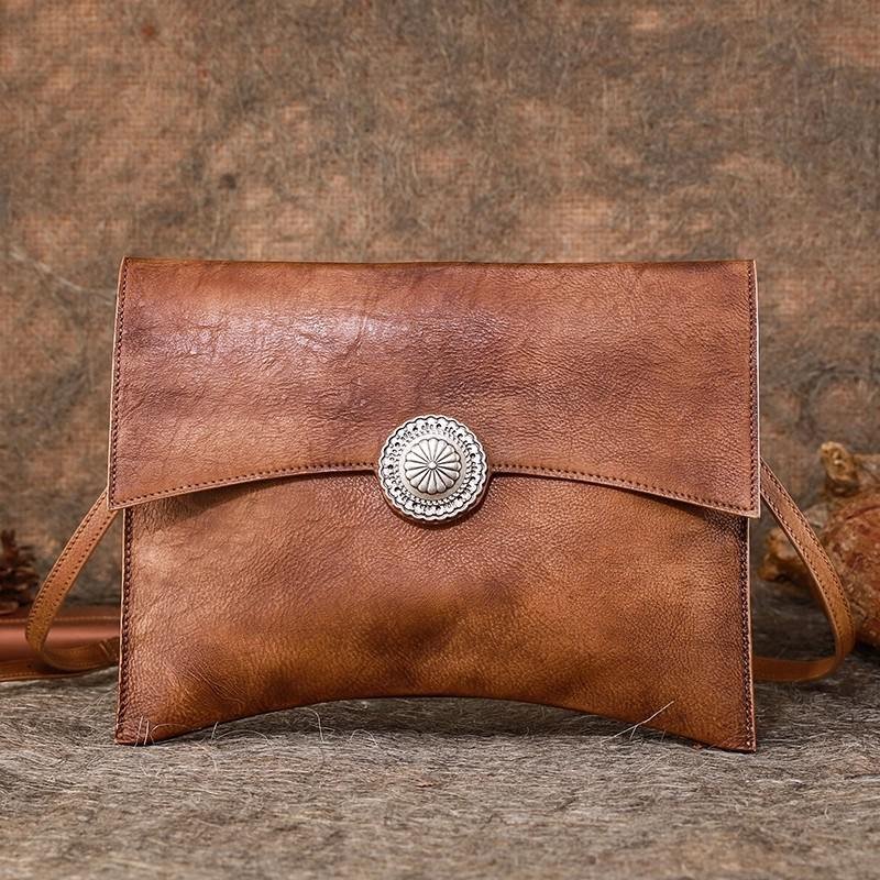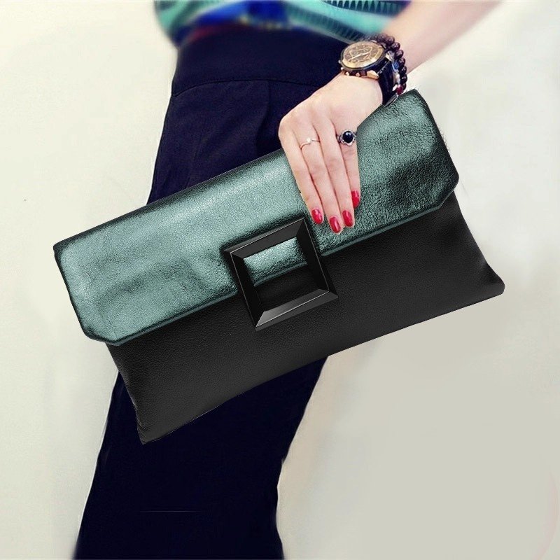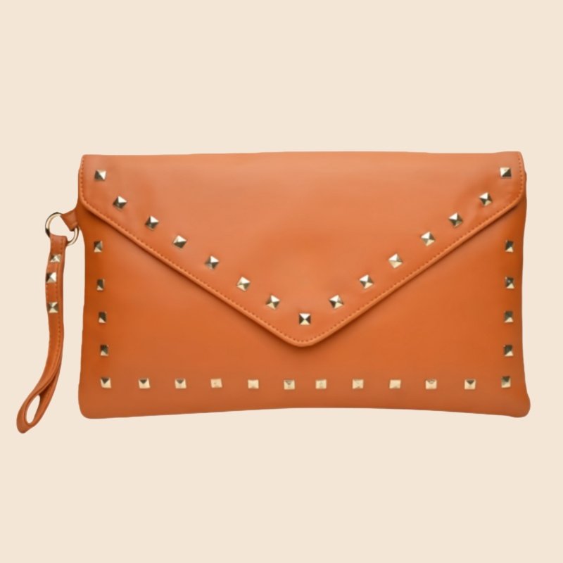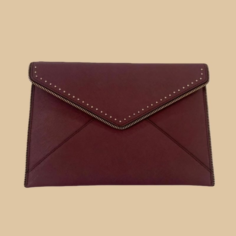 A leather envelope clutch is a tiny, flat purse with a secure clasp and a triangle flap that usually mimics an envelope. It is a carry-along bag that can accommodate several cards, a phone, some keys, and possibly one additional item.