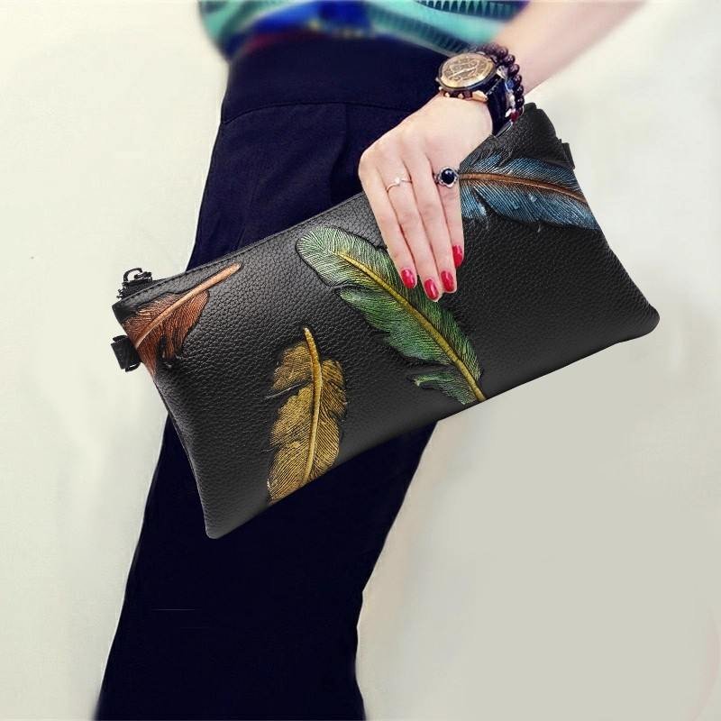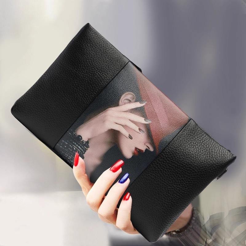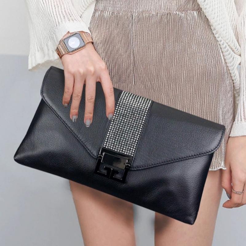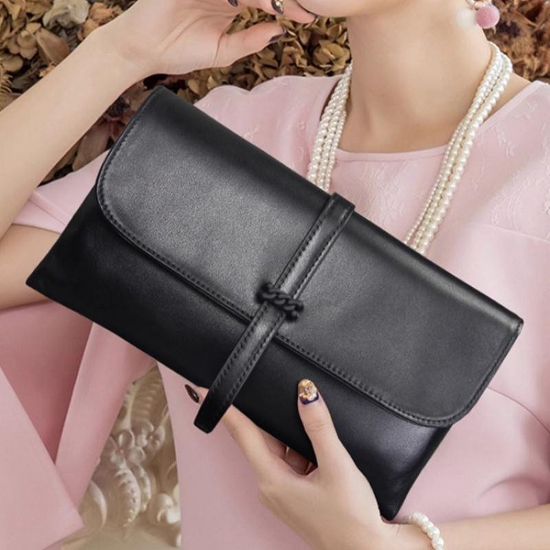 Leather clutches made of real vegetable-tanned leather or even paper leather are available in addition to standard leathers. Why not choose a big envelope shape, a black leather purse, or a black clutch?