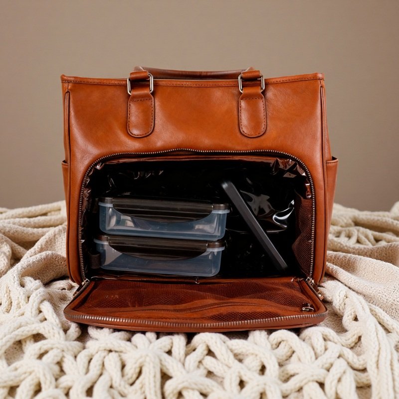 - Leather lunch bags are designed with structured interiors and defined compartments to help protect food items from pressure and deformation during daily carrying and transport.