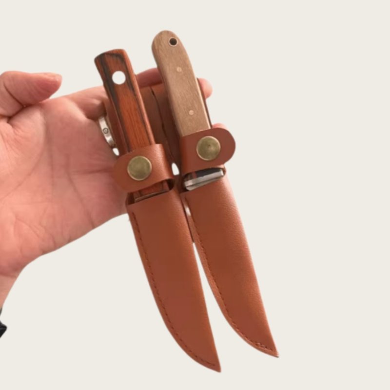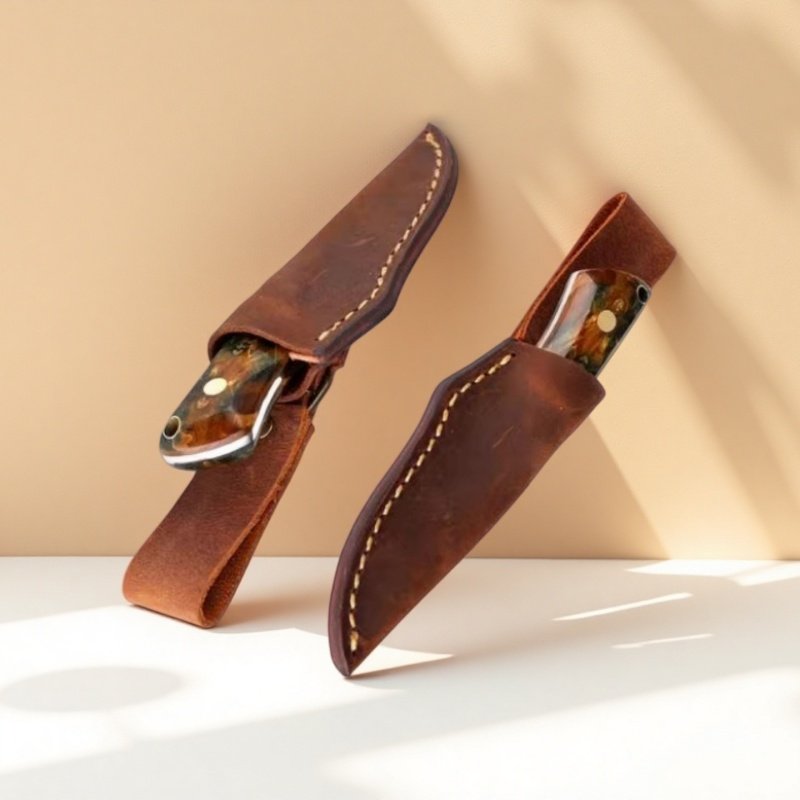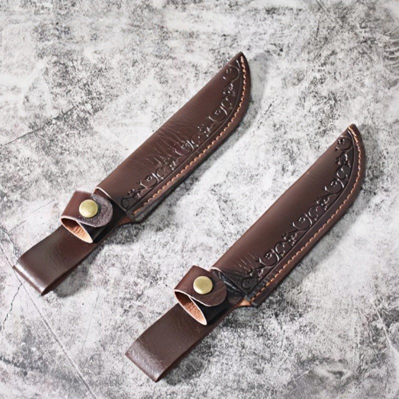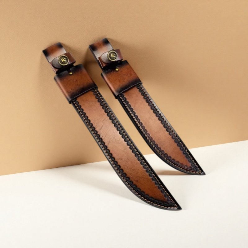 •  Custom logo leather sheaths supported via emboss, deboss, and die-stamp tooling for stable private label branding