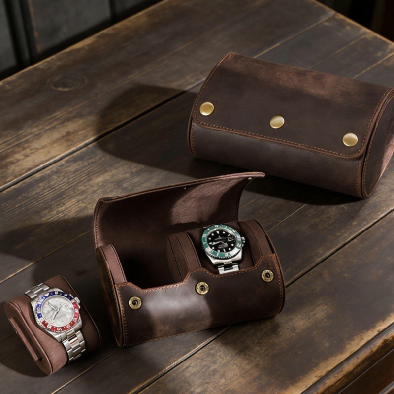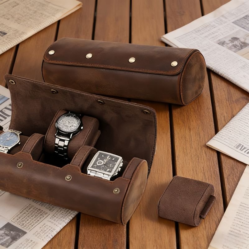 • Roll leather watch case: cylindrical shape, luxury organization, and travel-friendly. Our roll watch cases feature secure locks and snaps that keep the shape intact.