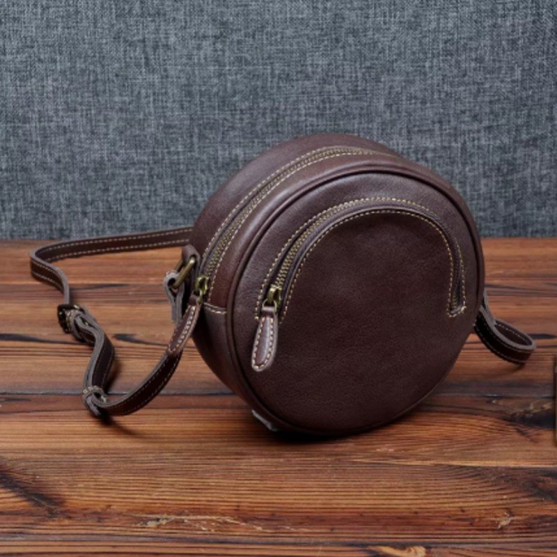 Our round leather bag are made from premium genuine leather, combine functionality and style, and can be office work and daily use.